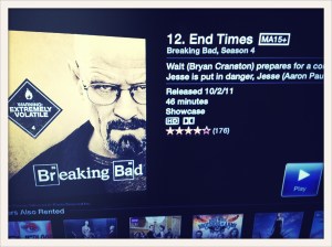 B and I have date night. Every night since he got back. And before he left. I am grateful for many date nights with Apple tv and Breaking Bad. For a partner who also always wants just one more. For a brilliant series that kept us up well past midnight many a night. The most extreme form of escapism. Perfect.