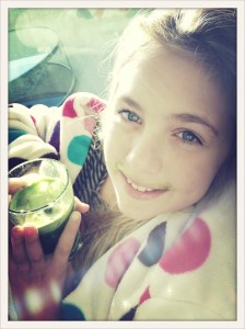 I am grateful for a sleepy eyed tousle haired little monkey with a green moustache. I love how Jem is embracing my start your day with a green juice thing. The poor girl has hardly opened her eyes and a yummy glass of juiced green veggies is thrust in her hands. Accompanied with a jovial ‘morning sweetheart’. I love that she is still young enough not to argue. Actually she thinks its ‘delicious’. You do, hey Jem?.