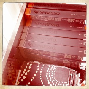 A thing of beauty. B’s words, not mine, on seeing a full drawer of Nespresso pods this morning. He is right, it is a thing of beauty. I am grateful today not only for the full drawer, the wonderful aroma, the best coffee at the touch of a button, the no mess but mostly for the moments to come.