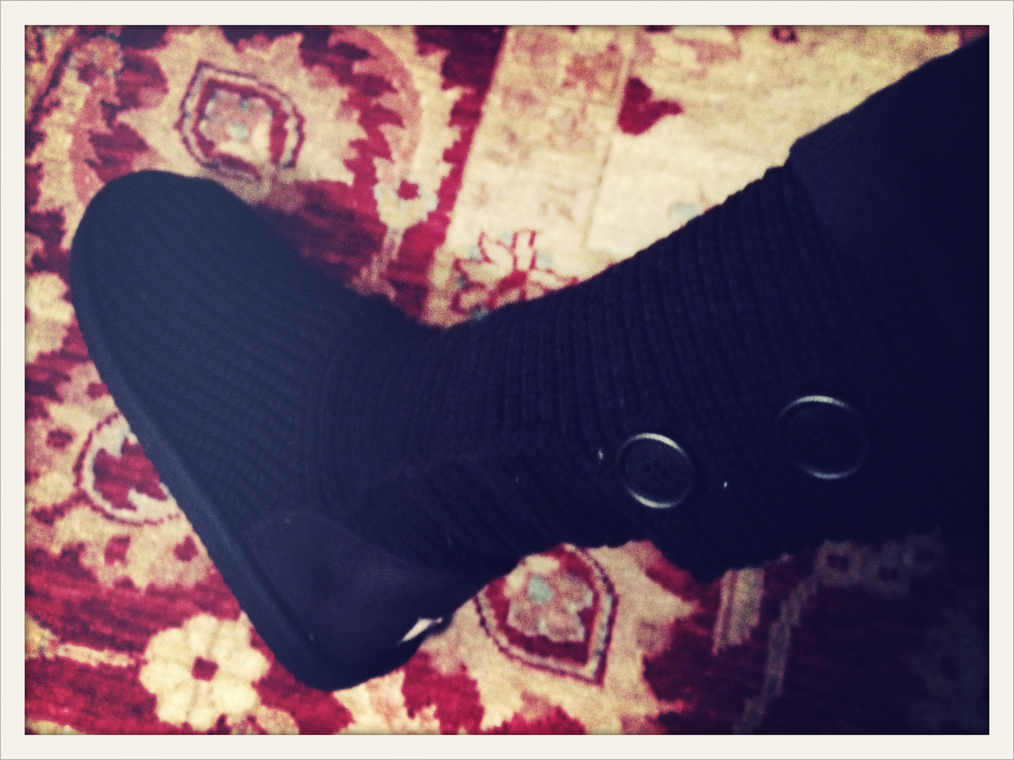I am grateful for new discoveries. I suffer from mild claustrophobia, which manifests itself mostly in my preference for aisle seats in the movies, and for the need to spread my toes. Often. And the inability to wear bed socks or even closed fluffy slippers. Which usually means I have cold feet. Until my most successful online purchase … I love and am so grateful for my only wear at home sock boots things. So not me but so me.