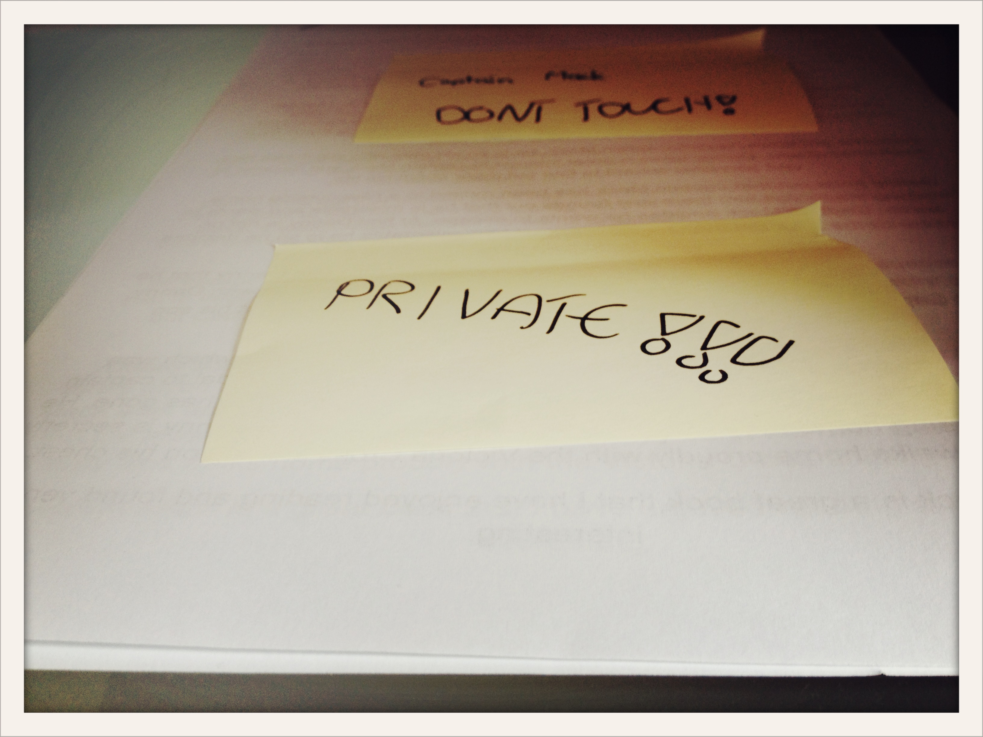 I was grateful today for a momentary pause, love and a private smile, during my chaotic day. Chaotic due to my own procrastination and pure avoidance of the need to get organised for a month away. I was bending over to pick up the bank statements I had knocked off the table (because I’m now in a panic) for the tax stuff our tax guy has wanted for a while now, which meant today was the perfect day for it (when I should have been doing everything but) feeling under pressure and quite irritated, yes at myself, when I spotted this little note Jem had left for herself. It made me smile and stop. And breathe. And catch myself. I am very grateful for that little moment today but I am also grateful (and proud) that I was able to stop myself from ignoring the very firm instruction. Until she gets home, that is.