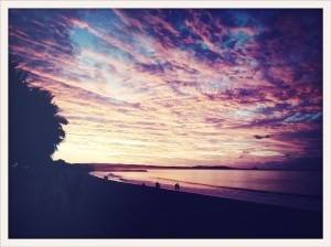 I am grateful for a beautiful sunset on the beach and for that unexpected moment when two glistening dolphins decide to surf some gentle waves right near the shore. And to B for going to Sydney next week so we had to have Kate’s family birthday dinner a night early. I am grateful for unexpectedly perfect timing and silver linings.