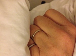 I never ever took my wedding ring off. Except for surgery and I’d never had any prior to my two caesarians. Not elective (not really sure why I felt the need to add that but I suspect there’s a blog in there somewhere). Anyway, when our daughters were born B wore my ring on his baby finger. And then during all my breast cancer treatments, and he still does because the chemo and ongoing medication has led to swollen joints so my ring doesn’t fit anymore. He has never taken it off from the moment he put it on for safekeeping. I am grateful for the feeling I felt this morning as my glance settled on B’s hand. I think it’s called love.